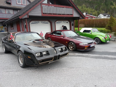 pynta bilar opp ved Sjøbuda på Austnes, klare for cruising i kveldsola...