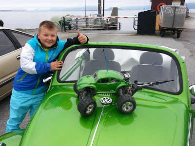 David viste stolt fram sin nye kreasjon. Eit Bajabug karosseri montert på sin Traxxas Stampede monstertruck. I same kulør som Fiona... Eple fell ikkje så langt fra stammen...